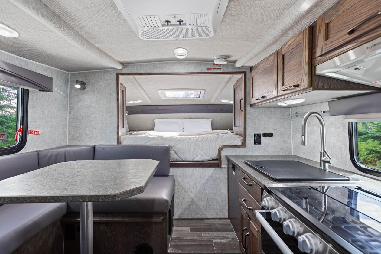 Explore Canada in one of CanaDream's Maxi Travel Campers. Providing exceptional comfort and style, whether you're on the road or camped for the night, our TCA truck camper is designed to "rough it in 5-star luxury". The Ford F350 trucks include 4x4 capabilities, enabling you to traverse a variety of terrains with ease. This truck camper available for rent is top of the line and one of the best deals on the market you can get for an RV rental.