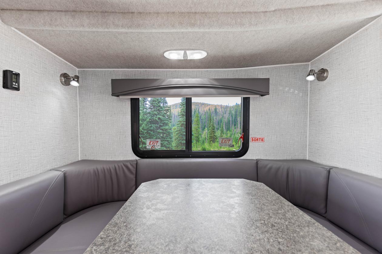 The dinette is a comfortable place to sit during the day for lounging or dining.