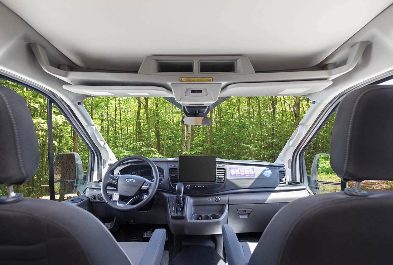The cab in the Super Van Camper is well laid out with everything within easy reach. The SVC is a breeze to drive.
