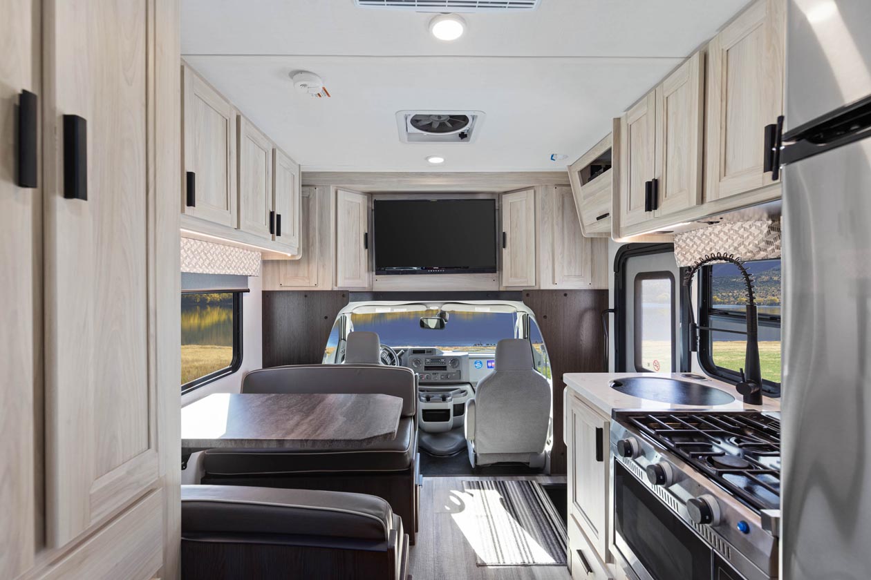 The living space in the SVC doubles as the dinette. Image is representative only of the interior of our SVC. Actual RV received at pick-up may have a slightly different configuration.