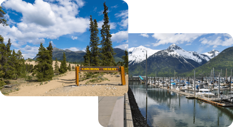 Carcross - Yukon Terminus for the White Pass & Yukon Railway and home to the oldest general store in the Yukon. Beautiful Emerald Lake and the Carcross Desert are close by.