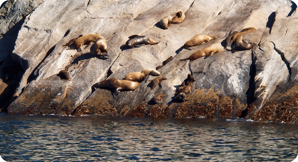 Seals basking on the rocks in the Kenai Peninsula of Alaska