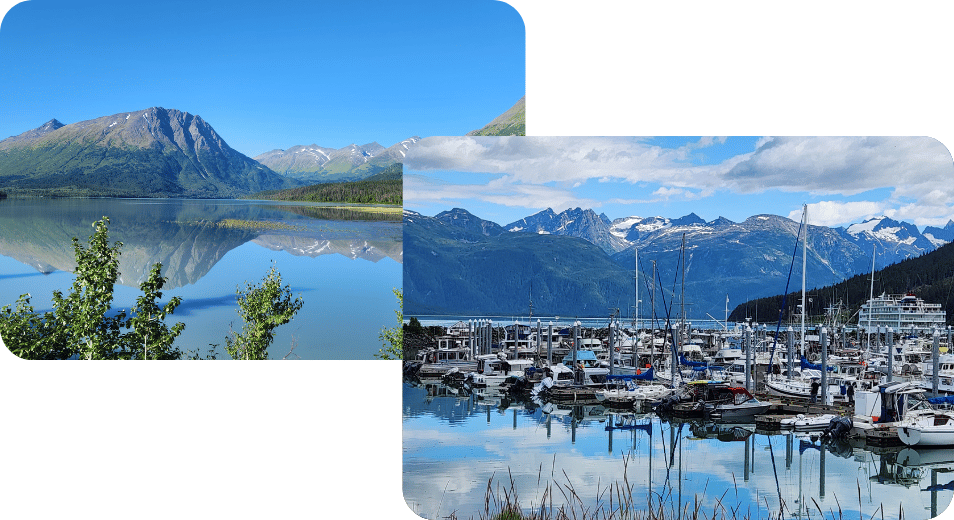 Whittier – base for day cruises in Prince William Sound, sea kayaking, hiking, historic sites, jet ski tours, mountain views and more.