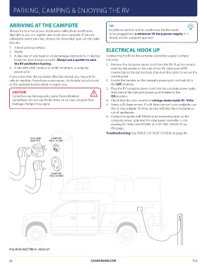 branches, tree stumps or rocks. Always use a spotter to park end into the socket on the side of the RV, twist base of RV