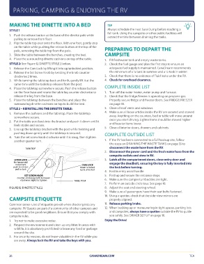 1. Remove the cushions and the tabletop. Place the tabletop 1. If the RV has been connected to a full hookup site, follow
